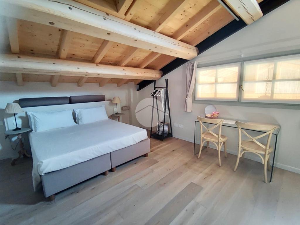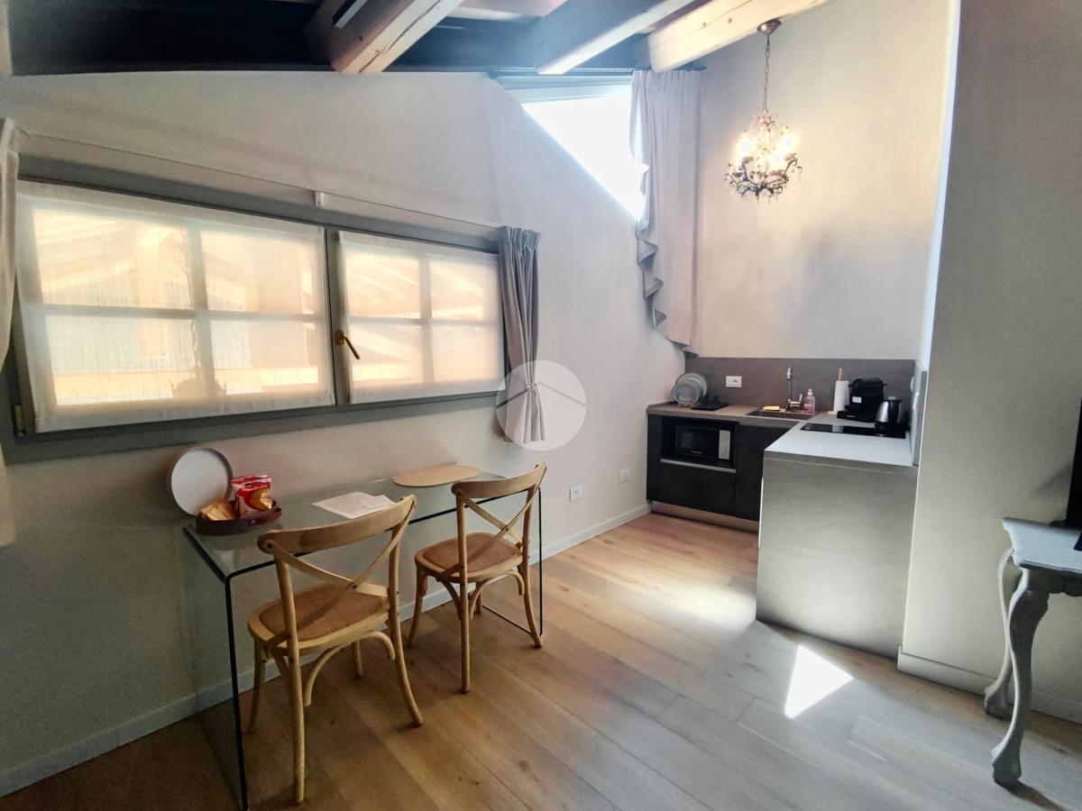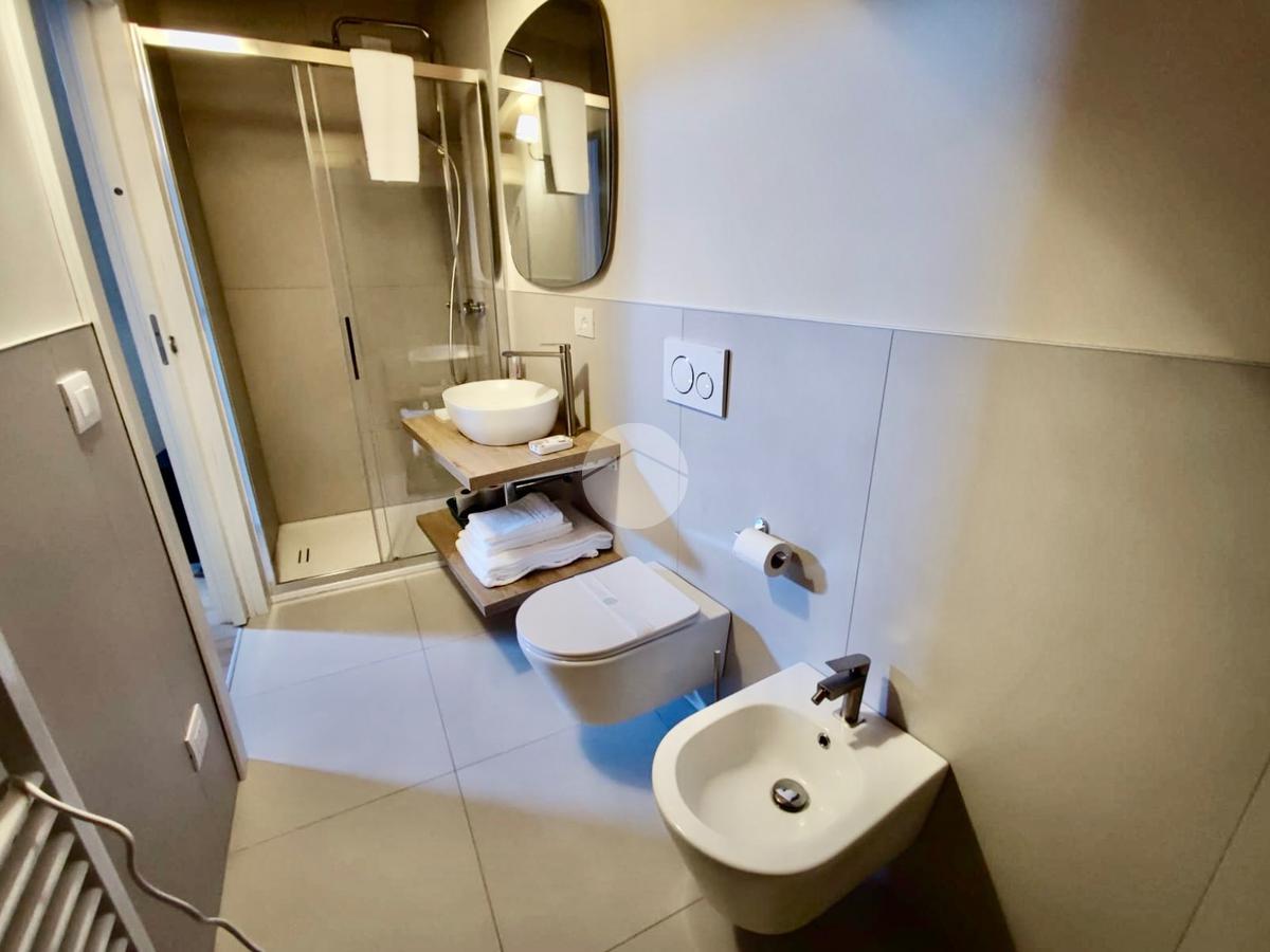 Il monolocale, situato al piano primo e raggiungibile tramite scala interna o ascensore, si presenta completamente arredato di cucina completa di elettrodomestici, una zona pranzo con tavolo e sedie, il letto matrimoniale e bagno comprensivo di doccia. Il riscaldamento è ad aria ed è presente uno split per l'aria condizionata caldo/freddo, infine dispone di attacco TV e connessione internet inclusi.