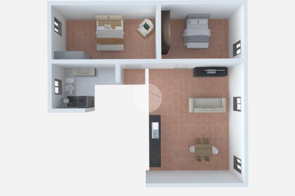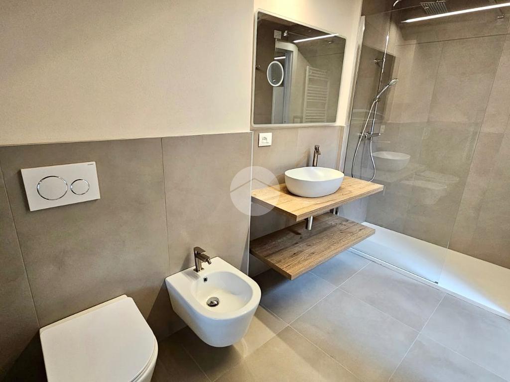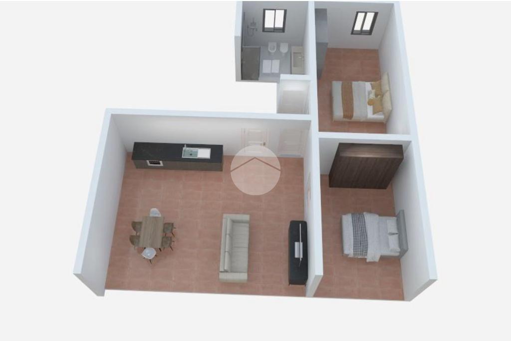 Il trilocale, situato al piano secondo e ultimo è raggiungibile tramite scala interna o ascensore, si apre su un'elegante zona living con divano e mobile tv e un completo angolo cottura; la zona notte presenta due camere da letto matrimoniali e bagno comprensivo di doccia. Il riscaldamento è a pompa di calore e l'immobiledispone di attacco TV e connessione internet inclusi.