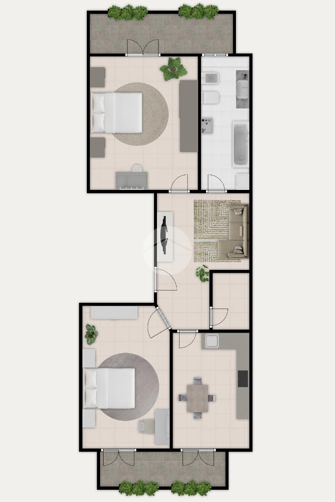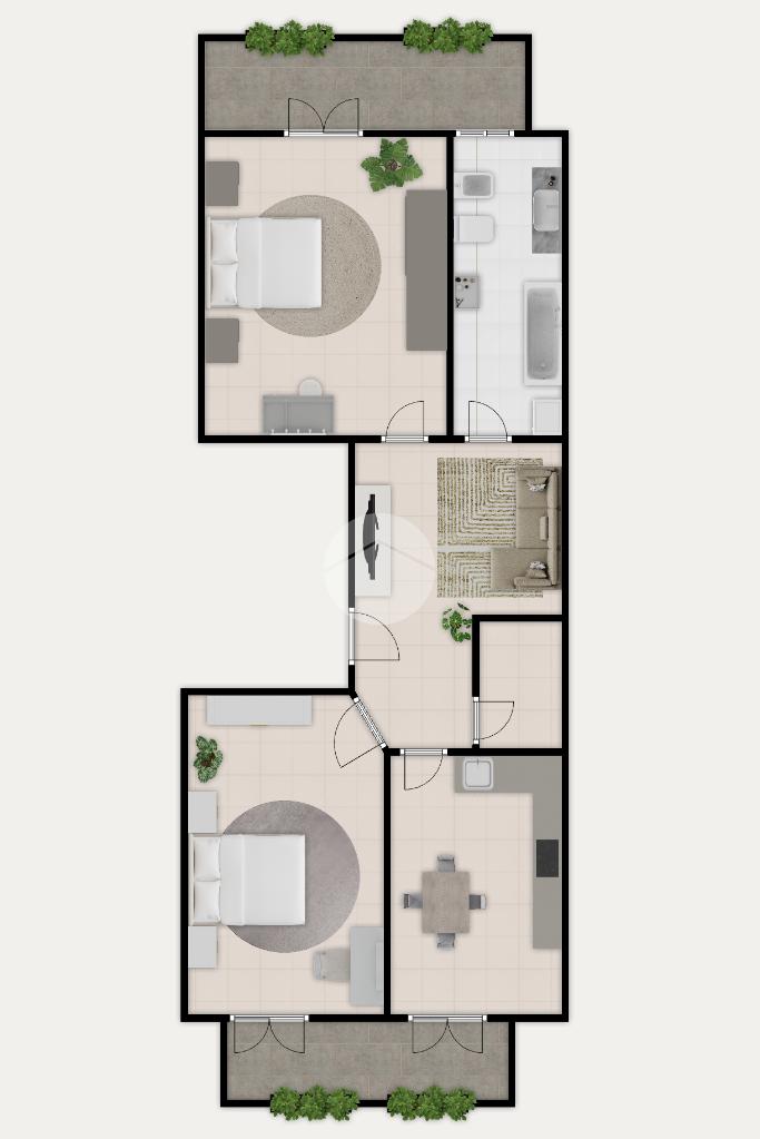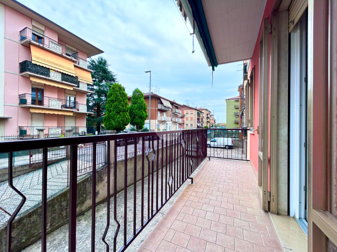L'immobile è così composto: dall'ingresso si apre un ampio disimpegno attualmente adibito a salotto, la cucina è abitabile con accesso al primo balcone, una camera da letto matrimoniale con accesso al balcone comunicante con la cucina, una seconda camera da letto matrimoniale anch'essa con accesso al secondo balcone, un bagno finestrato con vasca, infine un comodo e ampio ripostiglio.