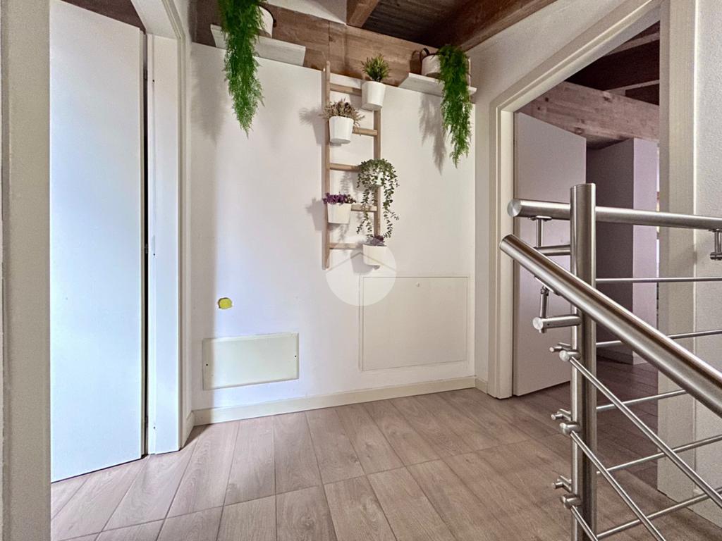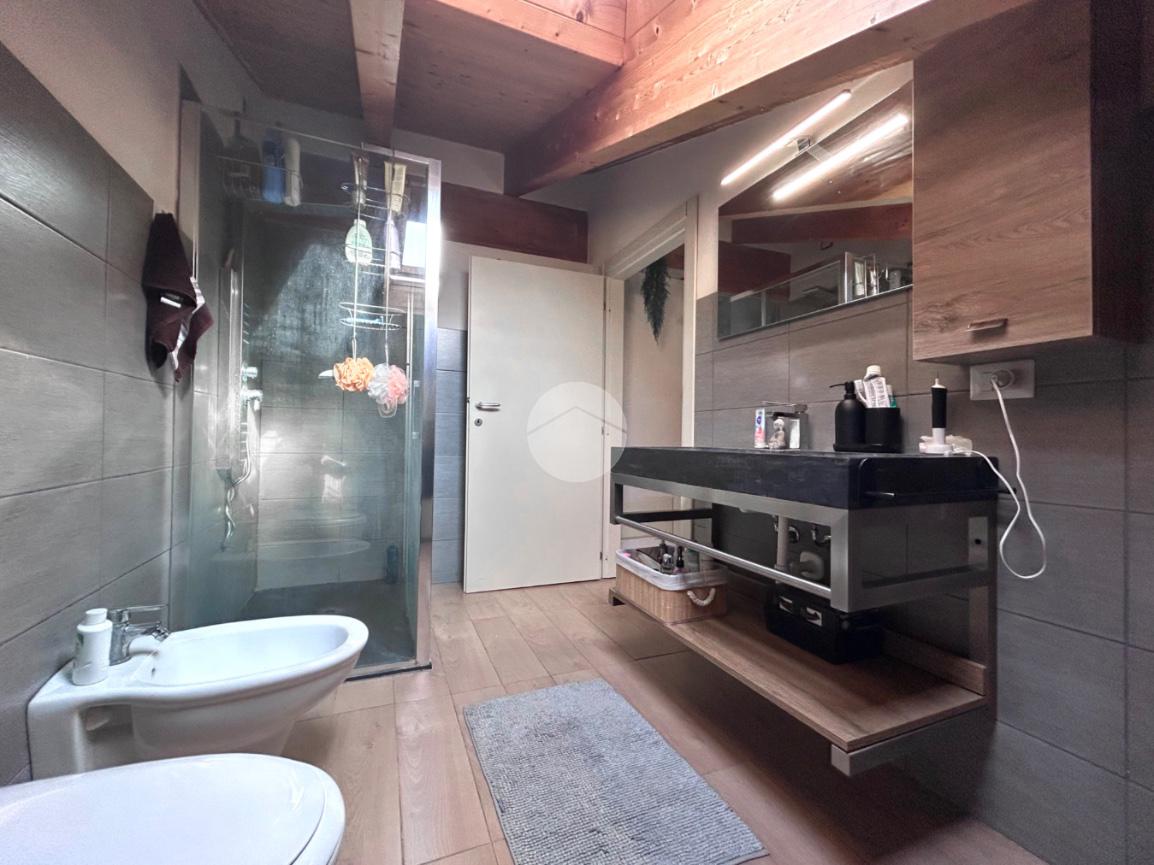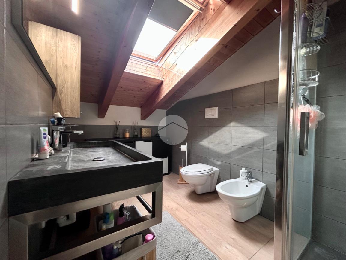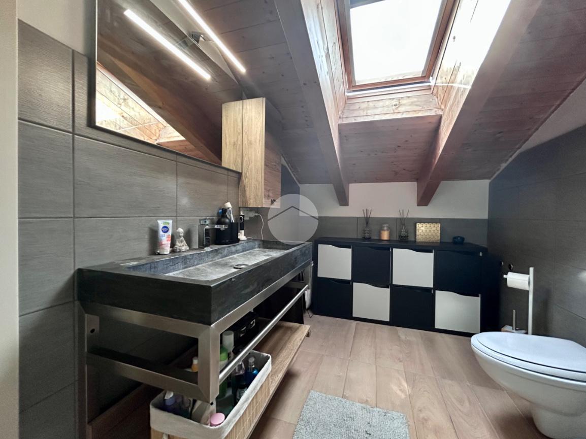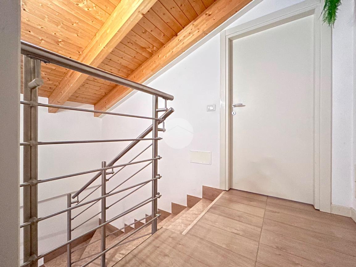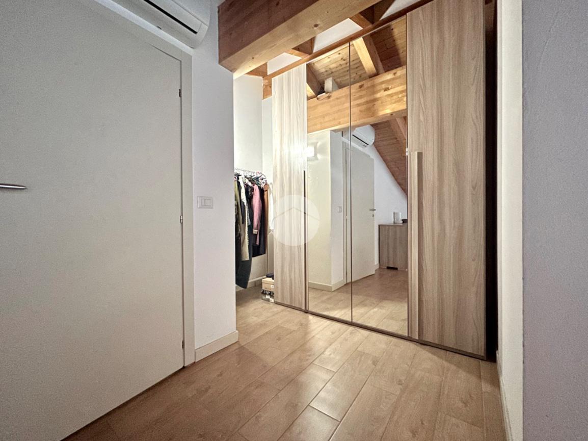 Dalla scala interna accediamo al secondo livello mansardato ove è presente il bagno finestrato con velux comprensivo di doccia, e ampia camera matrimoniale con angolo cabina armadio, anch’essa finestrata con velux.