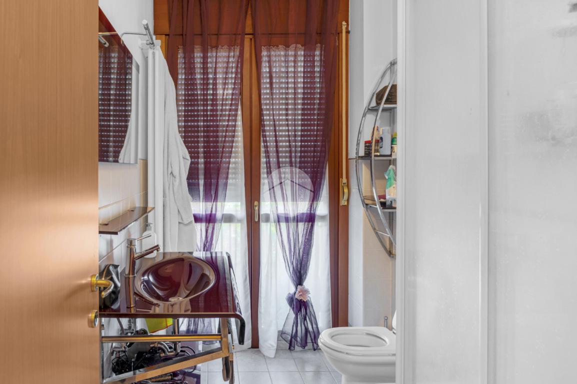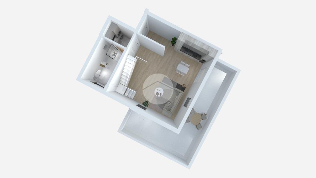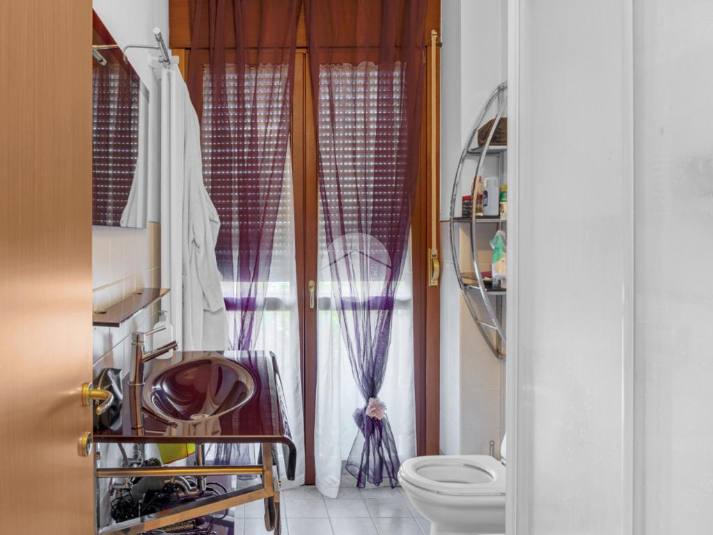 Dall’ingresso si apre la zona giorno con soggiorno e cucina open space, il primo bagno finestrato con antibagno e accesso al terrazzo abitabile che circonda due lati dell’abitazione.