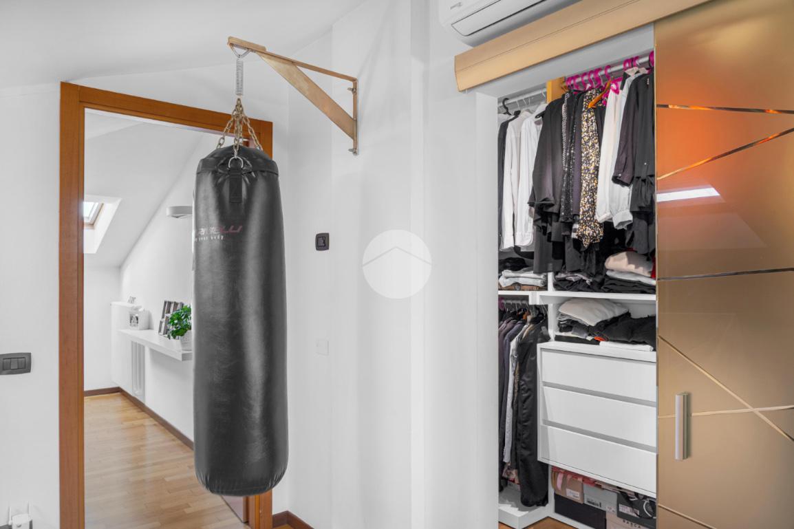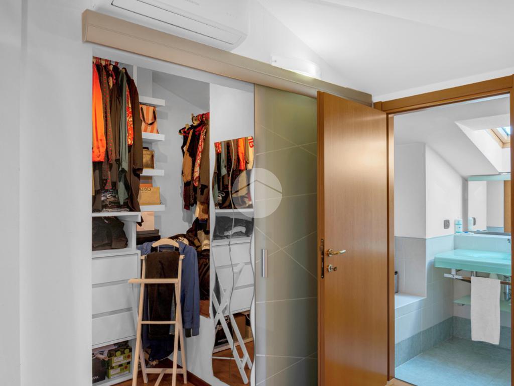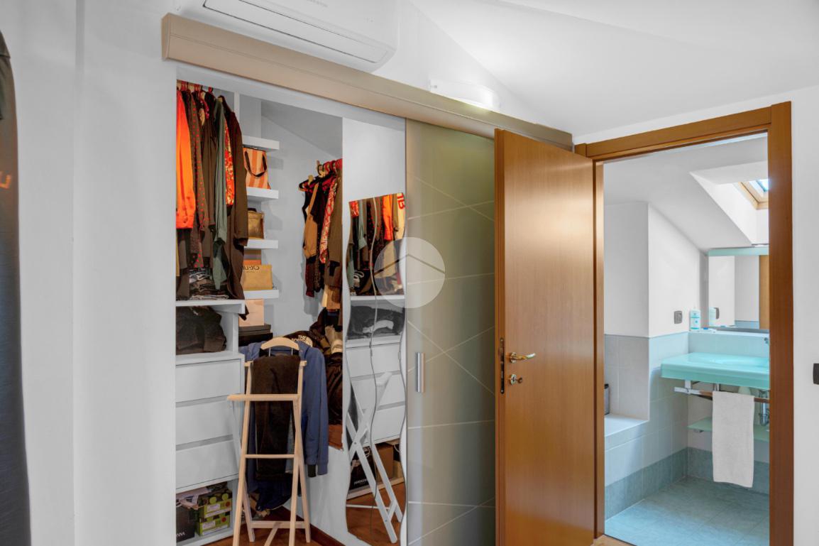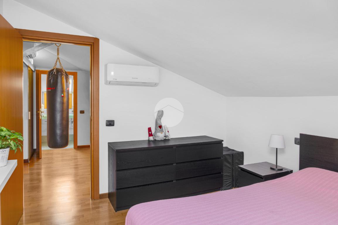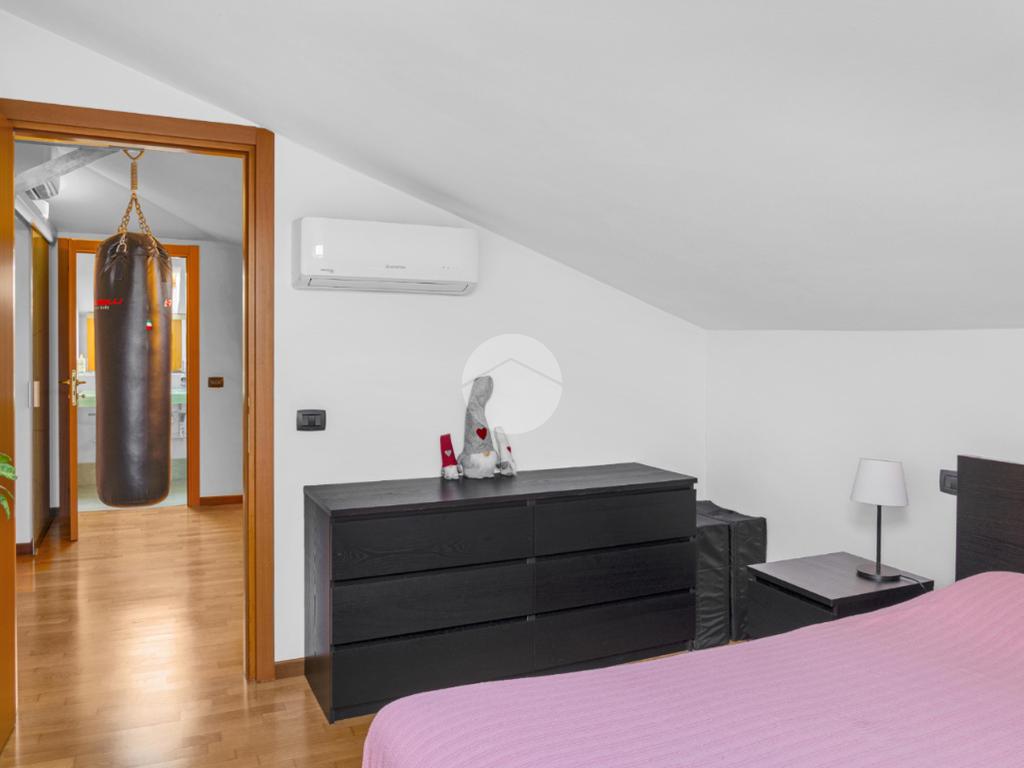 Le scale interne conducono al secondo livello ove troviamo la zona notte, composta da ampio disimpegno con pratico angolo studio, la camera da letto matrimoniale finestrata con velux, una spaziosa cabina armadio separata, infine il secondo bagno anch’esso finestrato con velux.