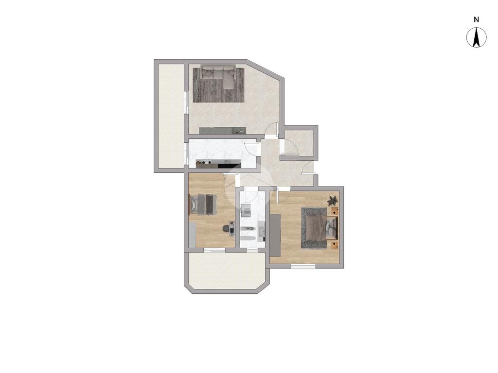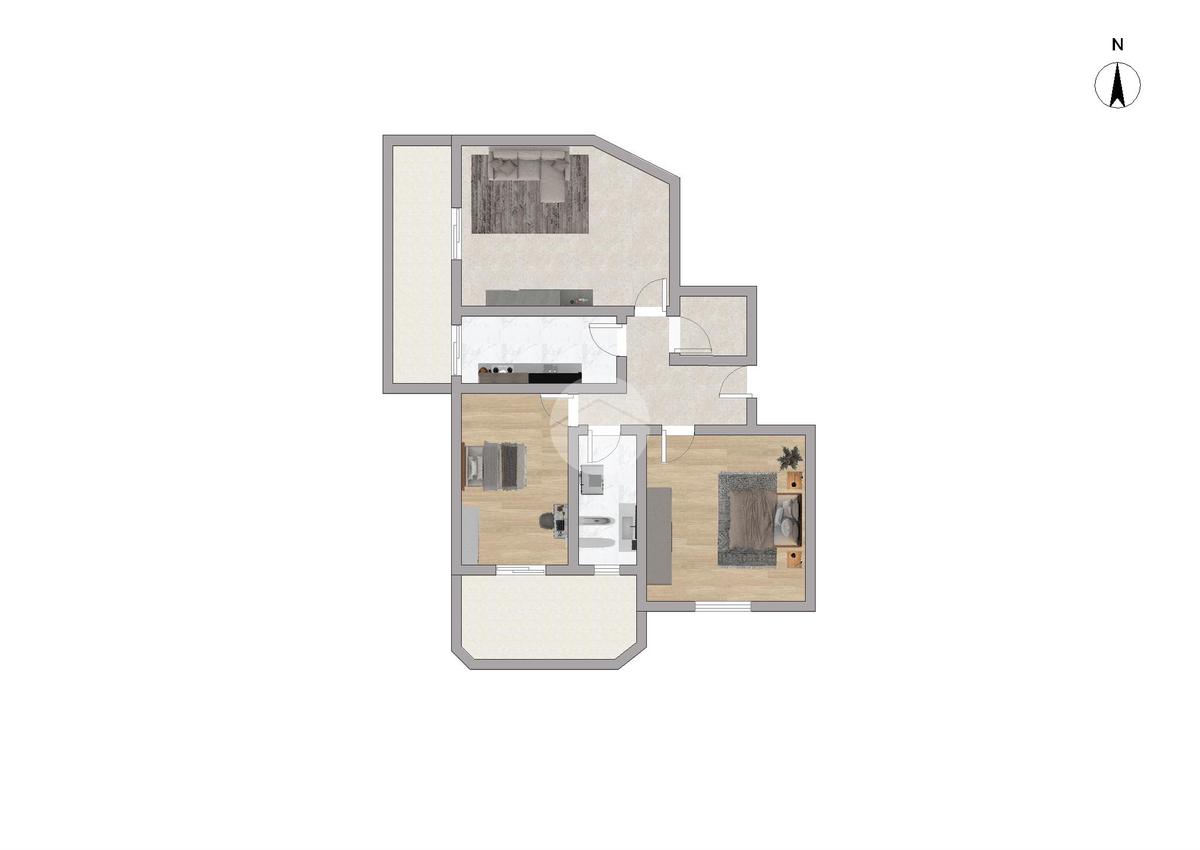 L'immobile è così composto: ampio disimpegno all'ingresso che divide la zona giorno dlla zona notte, soggiorno con accesso al primo balcone, cucina separata, una camera da letto matrimoniale, una camera doppia con accesso al terrazzo, un bagno finestrato con doccia e infine un comodo ripostiglio.