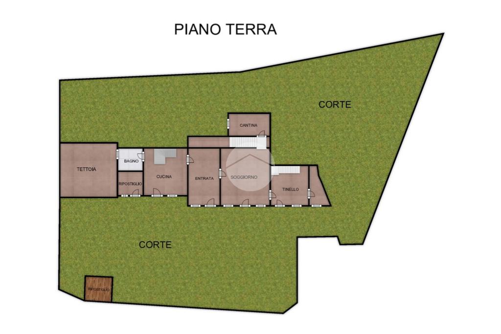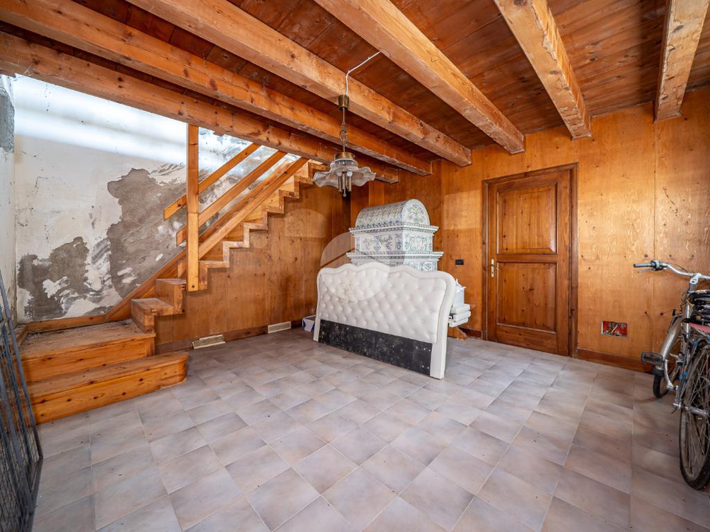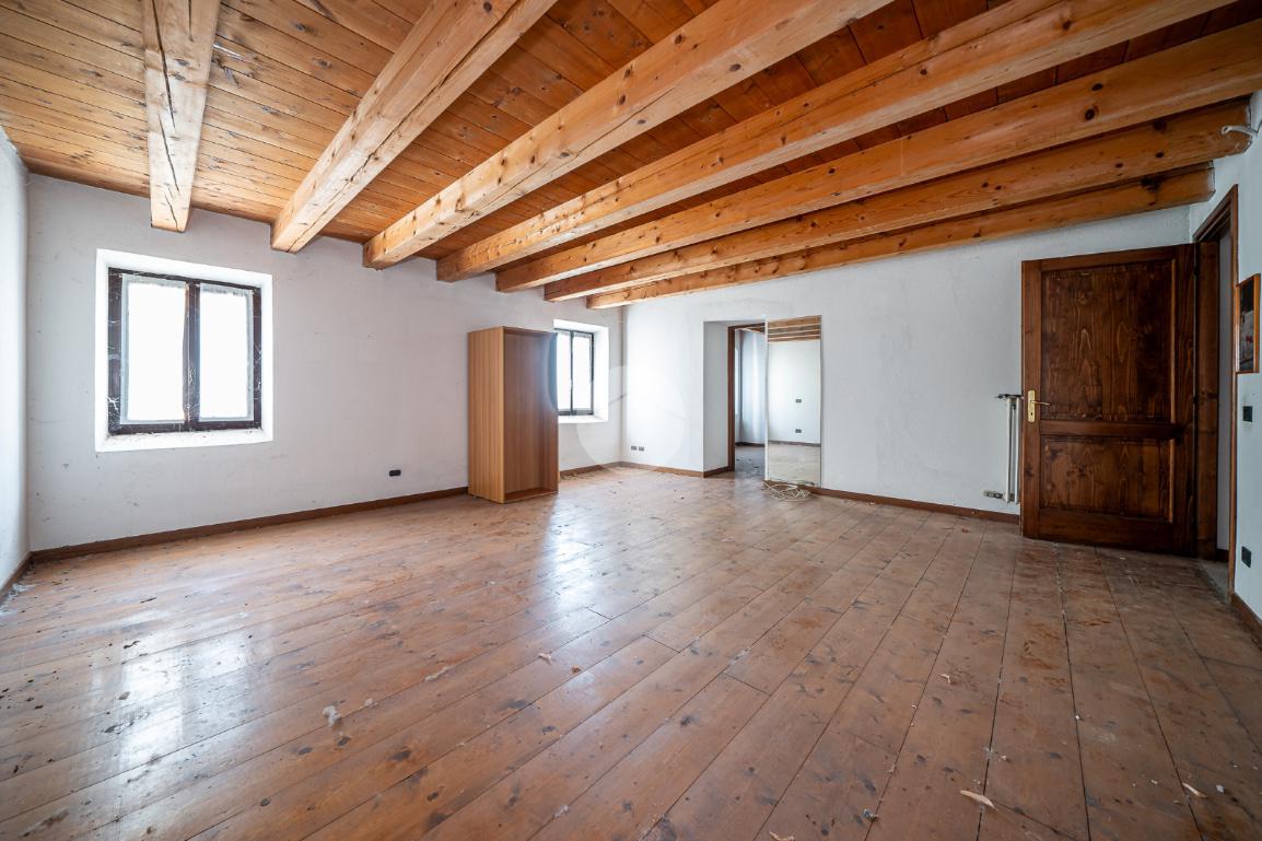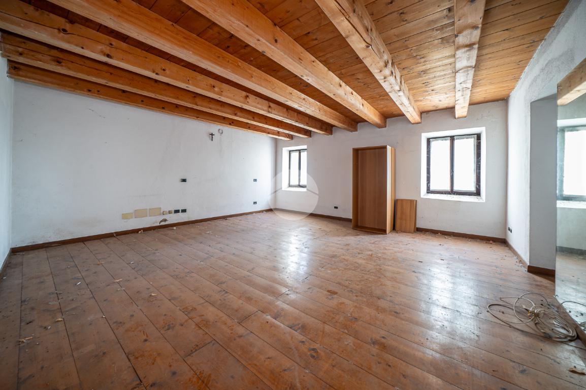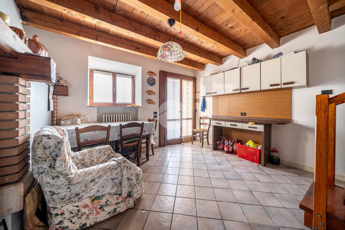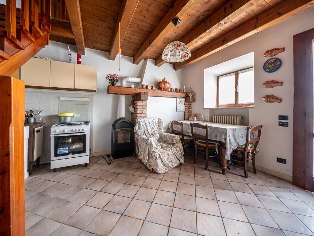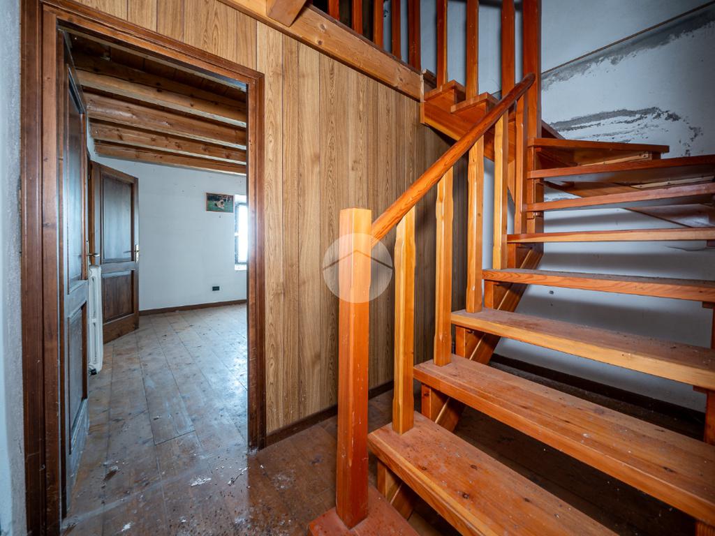 Attualmente la soluzione è suddivisa in due unità abitative: la prima unità si presenta su due livelli fuori terra, al piano terra troviamo il soggiorno con angolo cottura e bagno, al piano primo due camere da letto; la seconda unità abitativa si presenta su tre livelli fuori terra composta da soggiorno, cucina abitabile, bagno e una cantina, al piano primo troviamo due camere da letto e un bagno, al piano terzo gli ampi spazi permettono la realizzazione di diverse tipologie di locale.
