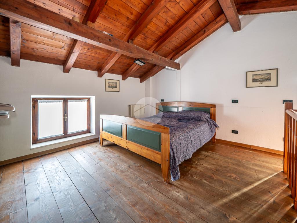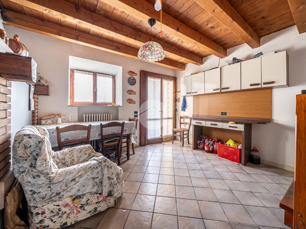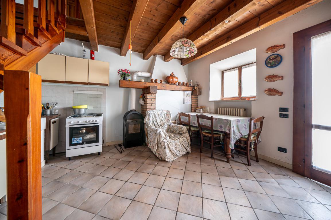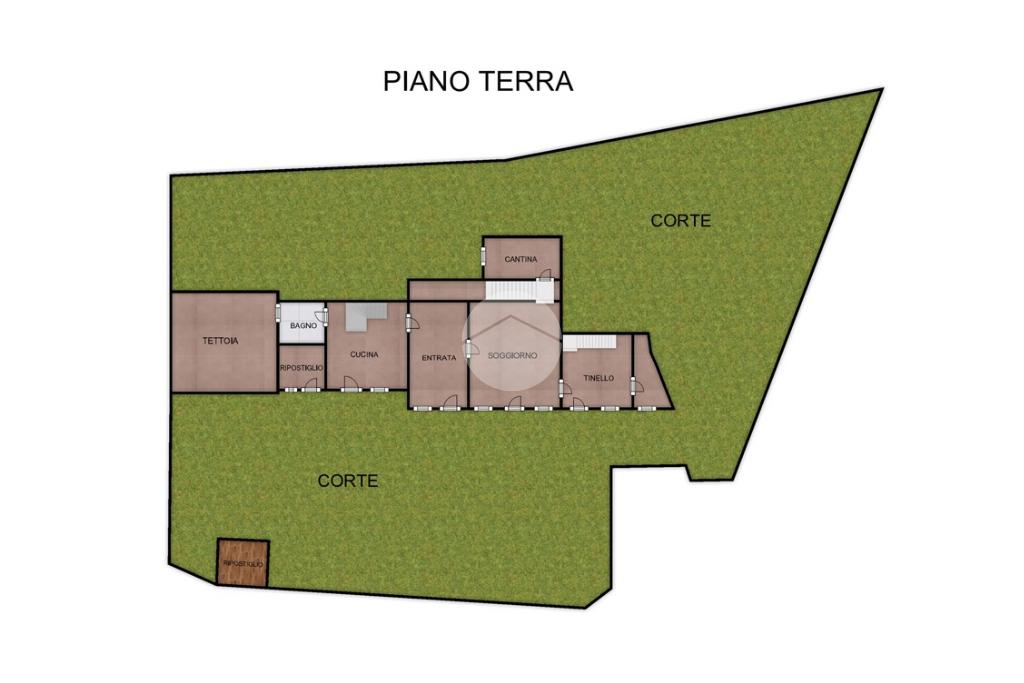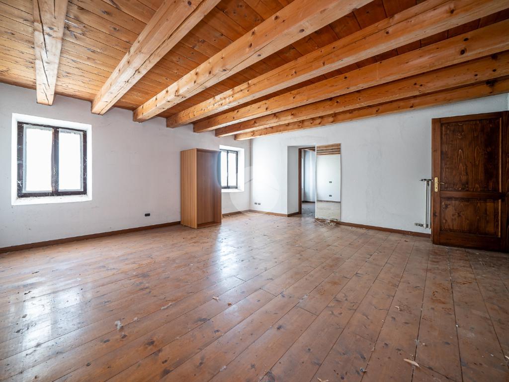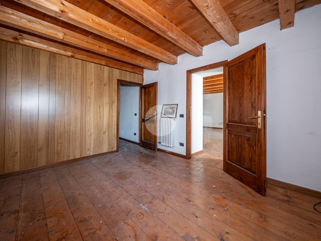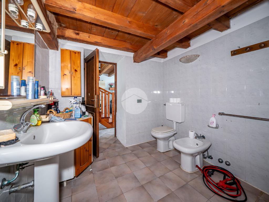 Attualmente la soluzione è suddivisa in due unità abitative: la prima unità si presenta su due livelli fuori terra, al piano terra troviamo il soggiorno con angolo cottura e bagno, al piano primo due camere da letto; la seconda unità abitativa si presenta su tre livelli fuori terra composta da soggiorno, cucina abitabile, bagno e una cantina, al piano primo troviamo due camere da letto e un bagno, al piano terzo gli ampi spazi permettono la realizzazione di diverse tipologie di locale.
