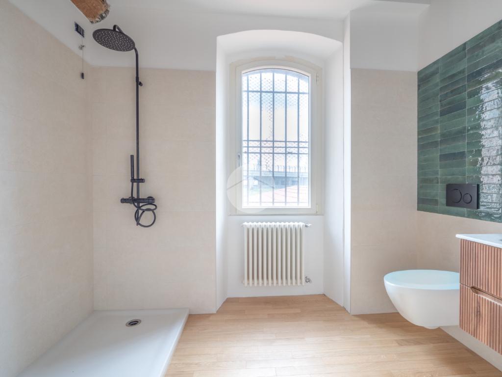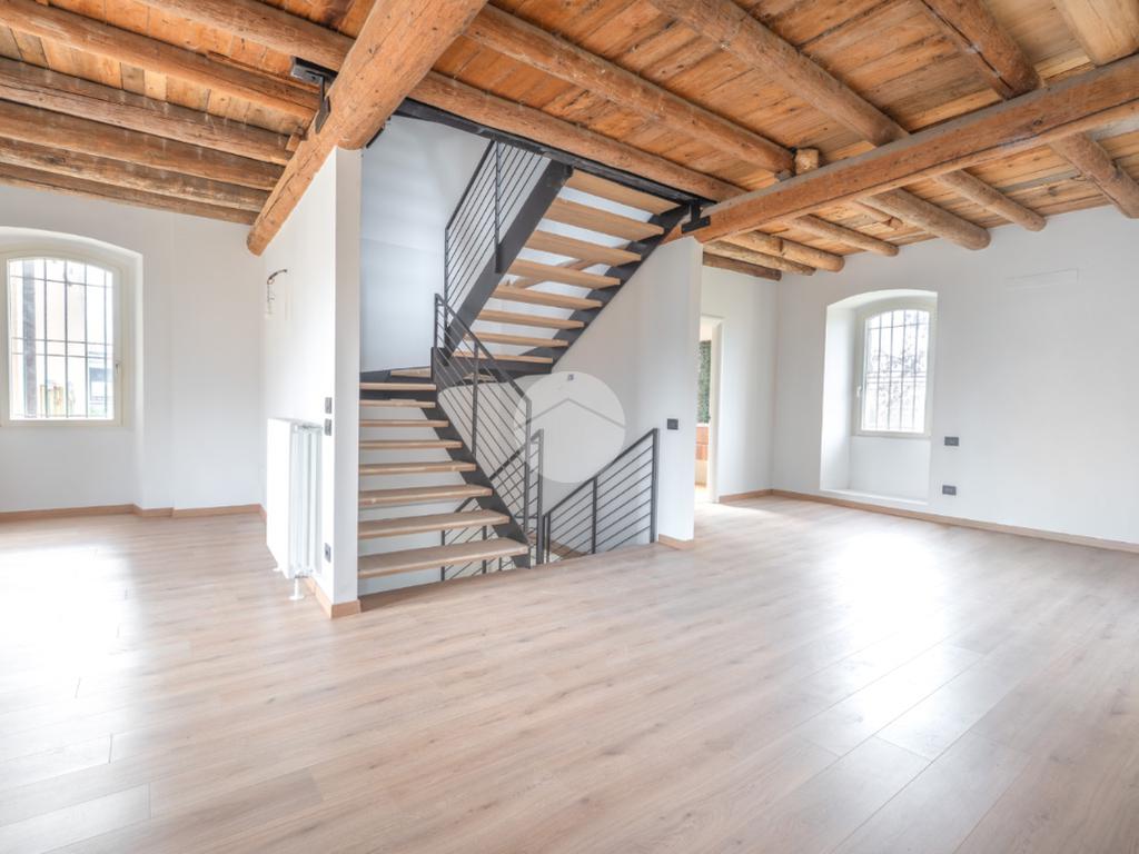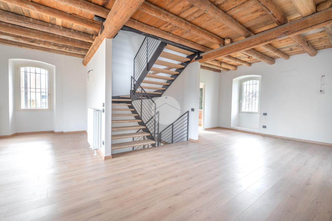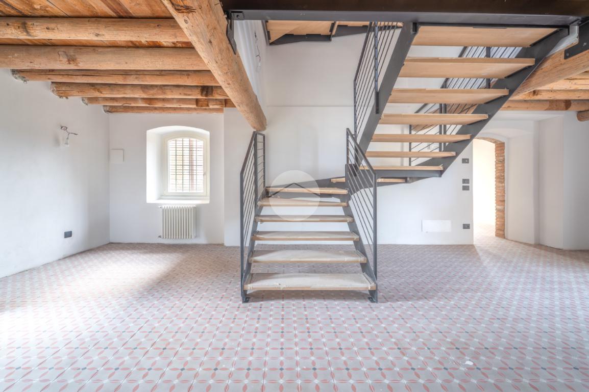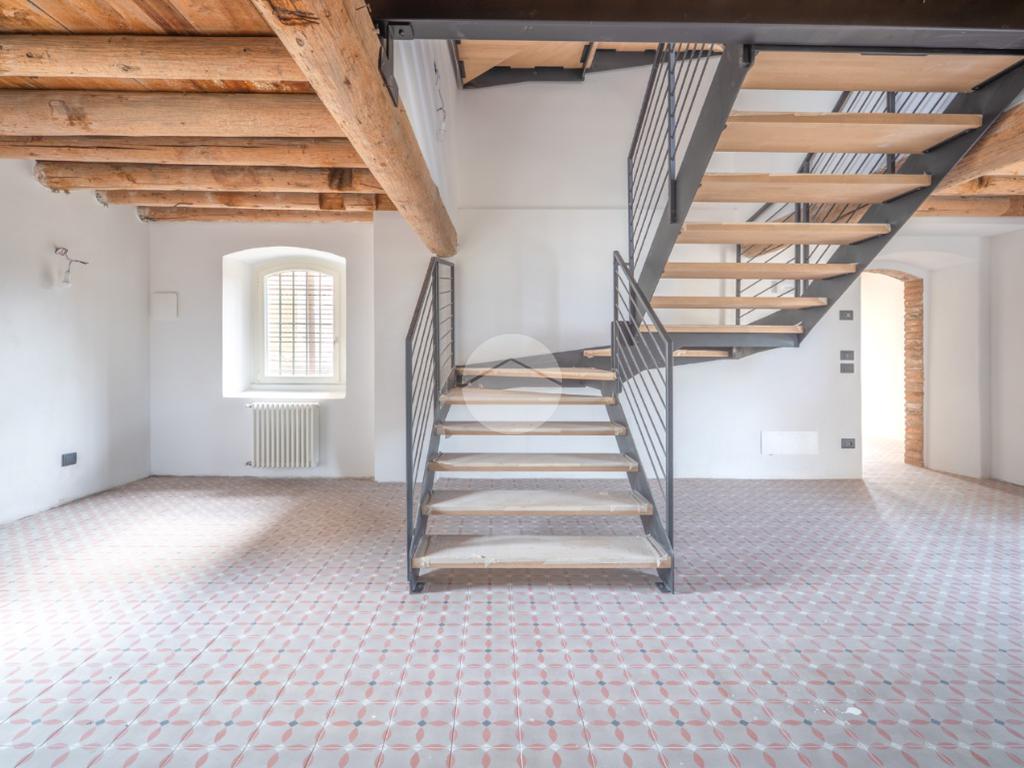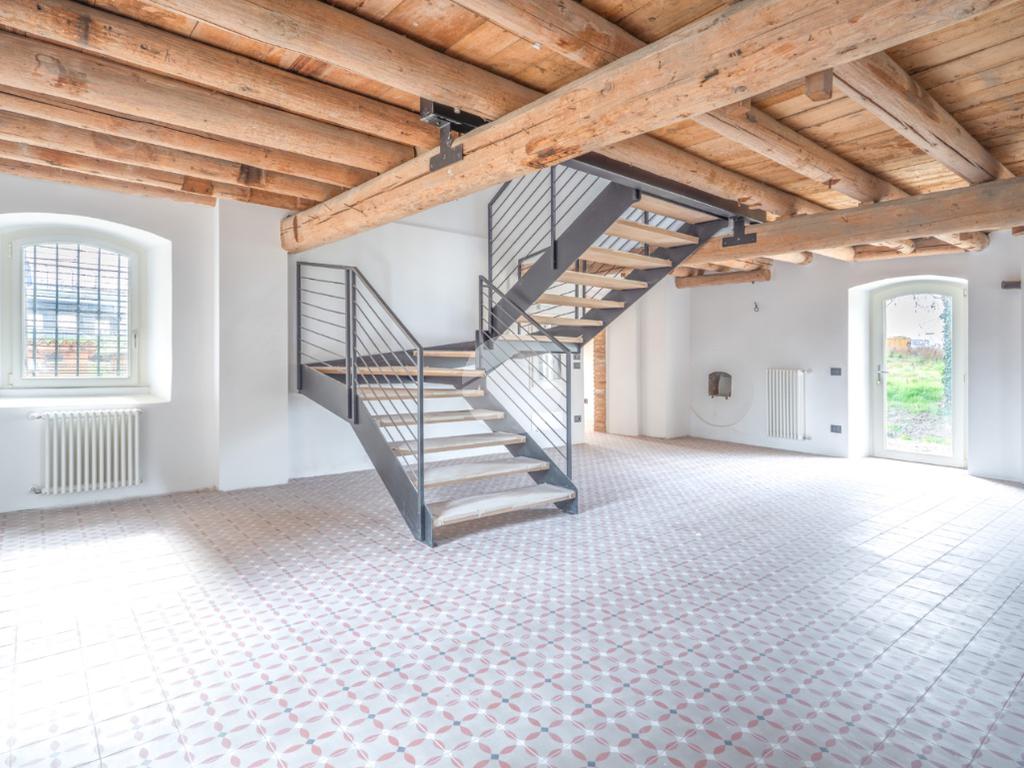 Tutti i livelli sono impreziositi dal dettaglio delle travi a vista originali del 1600, che regalano personalità e contrasto tra storia e modernità a tutti gli ambienti.